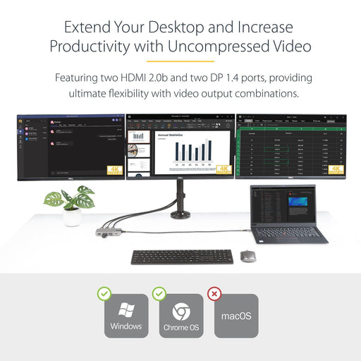 Startech22 in stockHIGH PERFORMANCE TRIPLE 4K: Driverless setup (no drivers required); provides a combination of 2x HDMI 2.0b & 2x DisplayPort 1.4 video outputs;...
